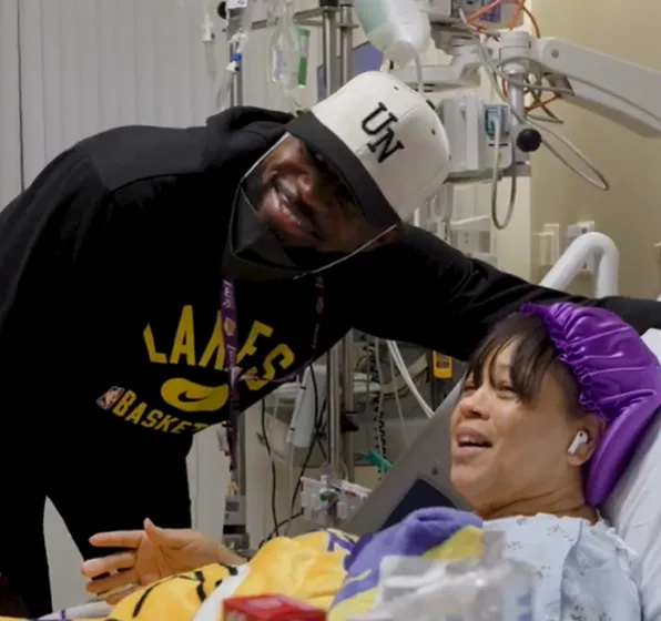 近日,詹姆斯现身加州大学洛杉矶分校健康中心,他亲切看望医院里面的病人,并向病人赠予礼物。